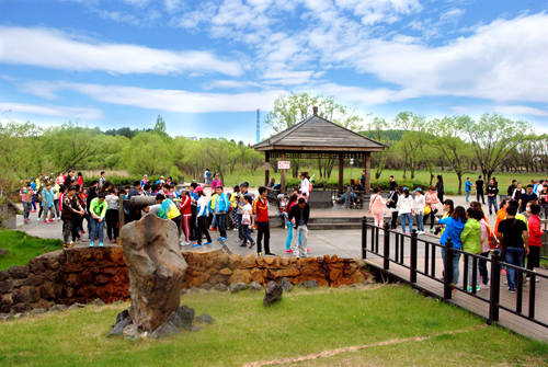 Thousands of elderly people come to live in Wudalianchi UNESCO Global Geopark because of the cool days here in Summer. The elderly visitors from Nanjing Elderly University will enjoy one leisure month in Wudalianchi. The delegates dance and sing joyously with the natives for welcoming the 70th birthday of China.