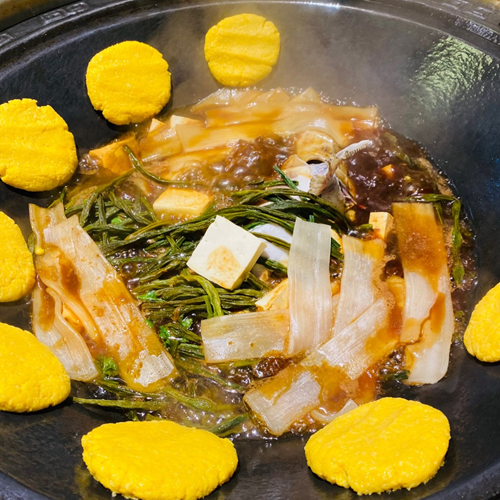 While waiting, the aroma seeps out through the gaps of the lid, mingling with the smell of burning firewood to tempt your taste buds. The moment you lift the lid, hot steam carrying rich fragrance rushes to your face: the fish has soaked up all the soup, becoming tender and flavorful; the tofu has absorbed the meaty aroma, bursting with juice when bitten into; the cornbread cakes stuck to the side of the pot are soaked in the gravy, crispy on the outside and soft inside. The steam burns your lips as you breathe, but you just can’t help taking bite after bite. Warmth spreads from the stomach to your hands and feet—this is the most down-to-earth happiness of autumn.