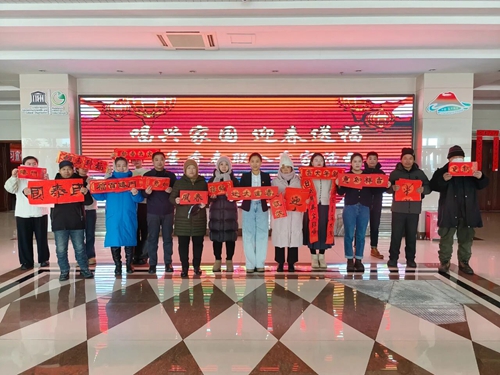 On January 17, the eve of the Spring Festival, the event themed "Singing Praises to the Nation and Home, Welcoming the Spring Festival with Blessings"—Ink-Fragranced Spring Festival Couplets Enter Thousands of Households—kicked off in the hall on the first floor of the Tourist Information Service Center, hosted by Wudalianchi Global Geopark. With traditional couplet culture as the carrier, the event ingeniously integrated the volcanic holy water culture and integrity-themed elements, drawing the attention of a large number of officials and staff who stopped to appreciate the exhibits, thus creating a unique cultural highlight ahead of the Spring Festival.