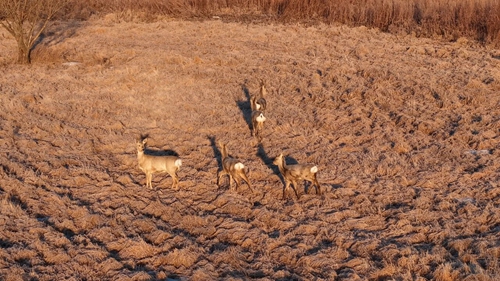 不仅丹顶鹤钟情于此,湿地周边的生态也愈发欣欣向荣。戴春同时还拍到了成群的狍子结伴觅食、追逐玩耍,人与自然和谐共生的美好图景在这里生动呈现。